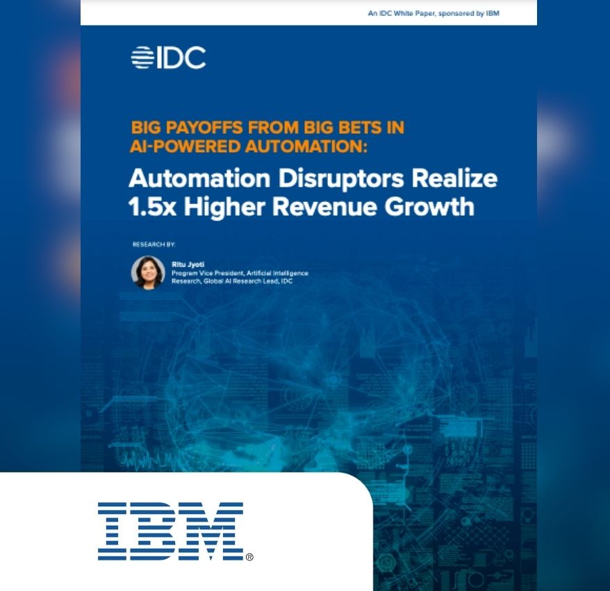Big Payoffs from Big Bets in AI-Powered Automation: Automation Disruptors Realize 1.5x Higher Revenue Growth (IDC) Find out how enterprises are adapting to the changing business landscape and how they’re using AI to facilitate effective automation transformations. Read the IDC report.